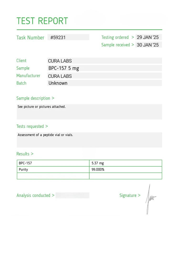 Every batch of CURA LABS BPC-157 is third-party tested for purity, potency, and safety. We don’t just claim clinical quality — we prove it.