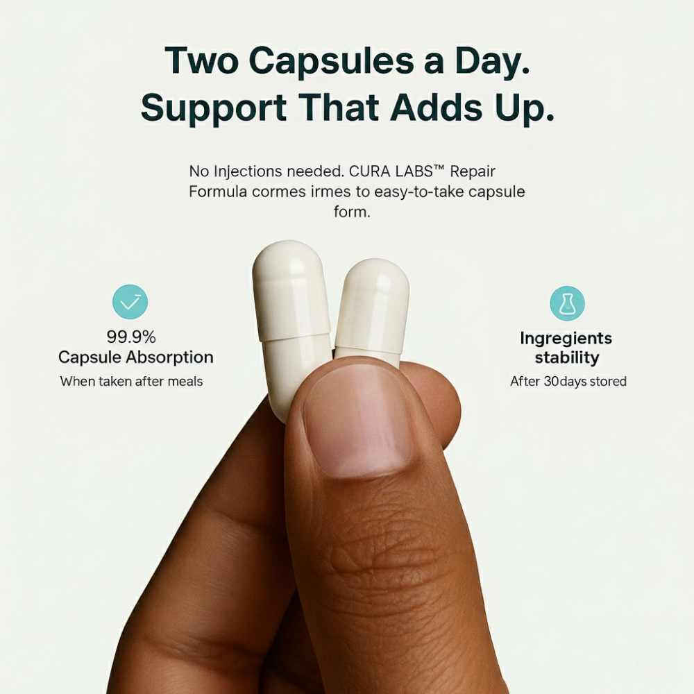 Every batch of CURA LABS Repair Formula is third-party tested for purity, potency, and safety. We don’t just claim clinical quality — we prove it.